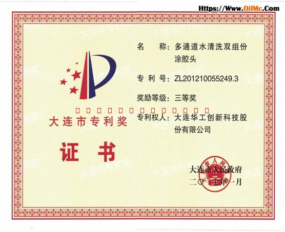 大连市专利奖证书